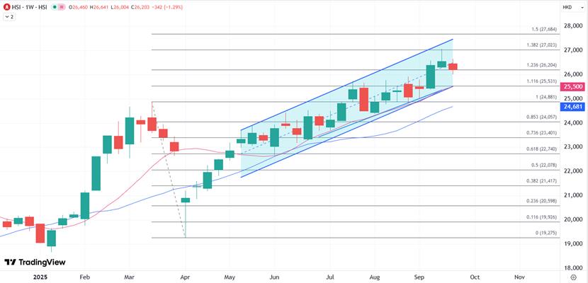 XM Hong Kong Stocks: Hang Seng Index continúa ajustándose, la línea semanal bloqueada por primera vez en tres semanas