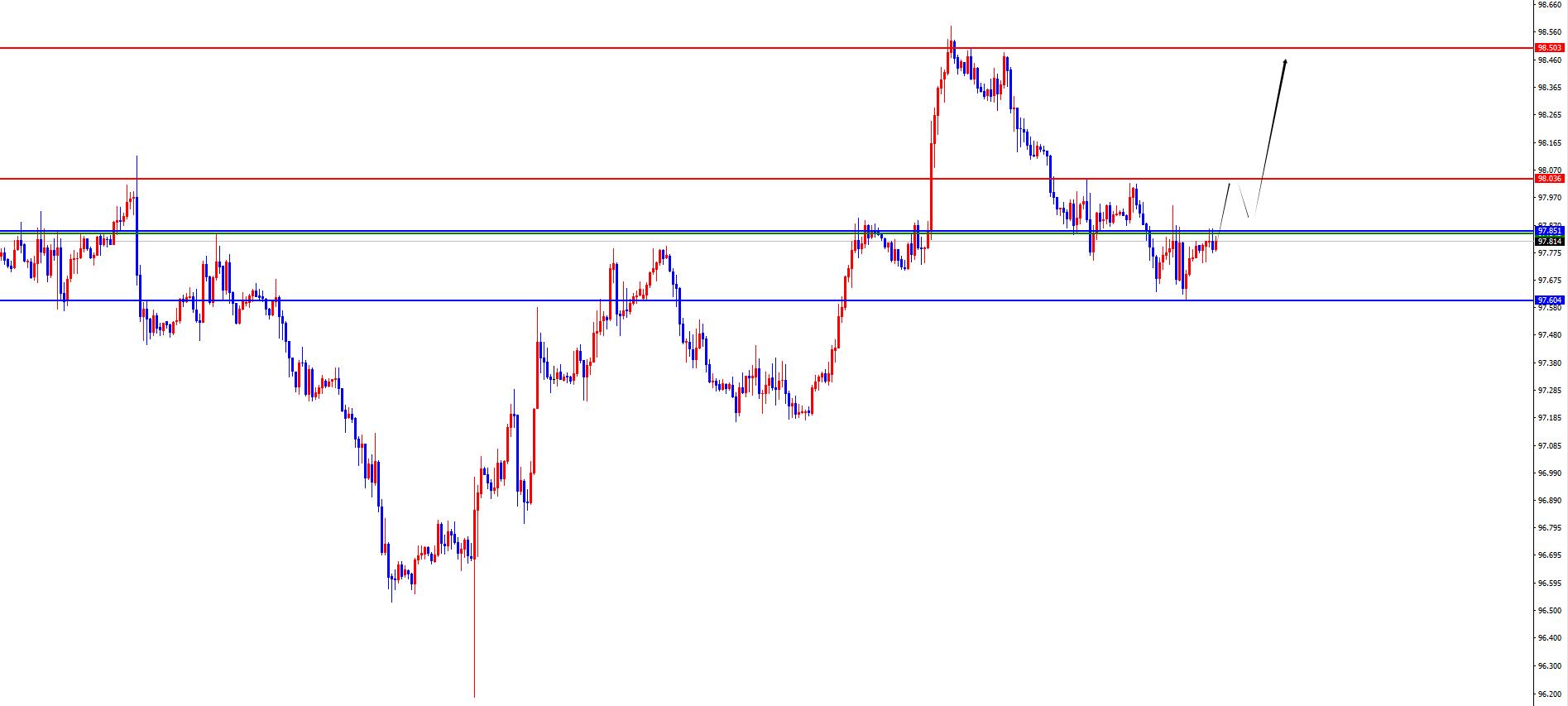 De un análisis de ciclo múltiple, el precio se ha consolidado en el nivel semanal recientemente. Actualmente, la línea semanal admite el área 97.85, y al mismo tiempo, el precio ha sido en la resistencia de la última semana, y los Bulls continúan a mediano plazo. Desde el nivel diario, a medida que pasa el tiempo, la línea diaria se admite actualmente en el área 97.60, y la banda por encima de esta posición del precio ha aumentado aún más. Desde la perspectiva de cuatro horas, la resistencia actual de cuatro horas está en 97.85. Esta posición resuena con la resistencia semanal, y el precio se ha estabilizado aún más. Después de la estabilización posterior, debe prestar atención al estado de fuerza, por lo que los toros arreglados ayer pueden continuar manteniendo. Hace una hora, el precio fluctuó y cayó nuevamente ayer, formando una divergencia inferior. En la actualidad, el estado alcista a corto plazo está actualmente a corto plazo, por lo que mire el enfoque posterior en el rato de precios y estabilizando 97.85 y luego xm-links.comenzó a hacer esfuerzos significativos para aumentar.