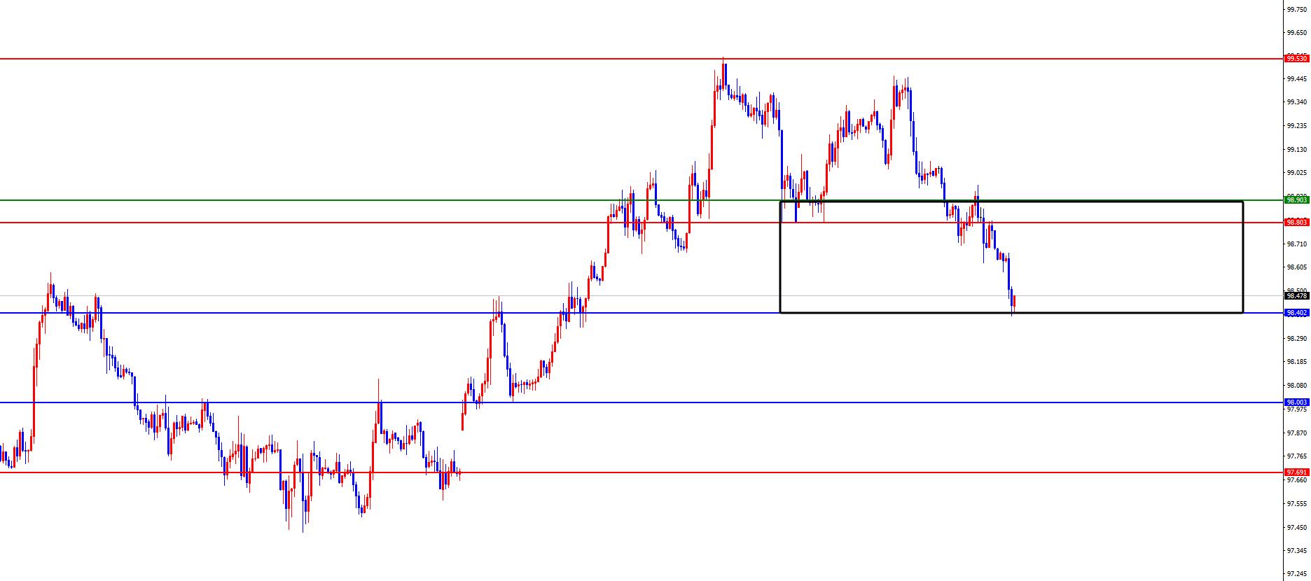 El índice estadounidense cayó bajo presión xm-links.como se esperaba y el enfoque a corto plazo está en 98Rango .40-98.90