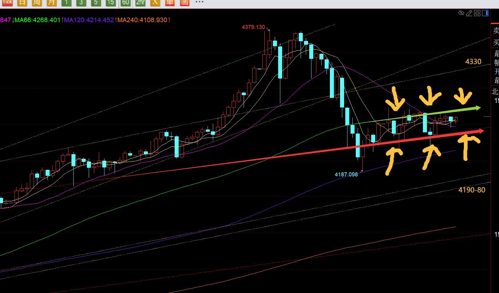 Tercero, el nivel horario dorado: en términos generales, después de una fuerte caída durante la noche, al día siguiente buscará máximos de rebote temprano en la mañana o divididos. niveles de resistencia, o mid-rail, big Yin y otras resistencias para probar si continuar la caída, especialmente si se levanta bruscamente al xm-links.comienzo de la mañana, es muy fácil No continuó y retrocedió; subió temprano y volvió a caer a la línea 4273,5 bajo presión. La presión 4277 mencionada en el video de Zhou fue ligeramente peor. Cayó a 4218 por primera vez y se recuperó antes de probar la línea 4270. 4218 pasó a ser el soporte divisorio 618; estaba bajo presión a las 42 de la tarde. 70 también suprimió una ola cerca de la pista media, cayó a 4221 y luego se estabilizó y rebotó a 4265; el precio iba y venía, aparentemente caótico, pero en realidad puede estar siguiendo una disposición triangular convergente, con los puntos altos moviéndose gradualmente hacia abajo y los puntos bajos aumentando gradualmente lentamente, lo que también puede considerarse xm-links.como una disposición de canales paralelos, la resistencia de Feng Shui Ridge es 4274, el soporte de Feng Shui Ridge es de alrededor de 4220, operando dentro de un rango de 50 metros; Además, en este tipo de mercado rápido de altibajos a corto plazo, si duda por un momento, no podrá ingresar a los puntos altos y bajos relativamente buenos, o será codicioso cuando obtenga ganancias, por lo que regresará a su posición original, o lo hará Para proteger, moverse hacia abajo y defender antes de alcanzar su espacio objetivo original; por lo tanto, solo puedes cerrar cuando sea bueno, pero al final definitivamente romperá el equilibrio e irá en una dirección para romper o expandir el rango de impacto. Debe prestar atención a la línea de resistencia del promedio móvil de 66 días 4268 y al punto máximo de la placa asiática 4274. Si estas dos resistencias se rompen hacia arriba, y es después del avance continuo de Yang o del avance de Dayang de 66 días, entonces puede considerar dar un paso atrás para seguir la tendencia alcista. Puede al menos hacer una ola de sub-máximos, ver 618 dividiendo la resistencia 4305, o incluso por debajo del punto de contrapresión derivado del canal anterior 4330; por el contrario, si no hay Si no se pueden superar estos dos niveles de resistencia, puede haber una ola de presión a la baja, especialmente la línea de tendencia roja en el gráfico de ruptura efectiva corresponde al soporte actual de 4240. También requiere condiciones negativas continuas o totalmente negativas para ser efectiva. Luego puede probar el rango del mínimo del viernes pasado de 4190-4185. Mire sus ganancias y pérdidas; por supuesto, mientras se atreva a bajar más, el macd divergirá desde abajo y, cuando se estabilice, habrá un punto alcista relativamente bueno en el extremo inferior de las perspectivas del mercado; la tendencia alcista no cambiará, y los ajustes y correcciones a la baja son todos preparativos para que las perspectivas del mercado establezcan nuevos máximos históricos;