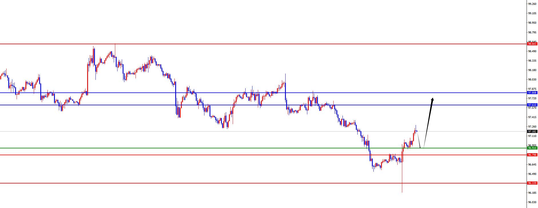 Da un'analisi multi-ciclo, il prezzo si è recentemente consolidato su e giù a livello settimanale. Attualmente, la resistenza settimanale si trova nell'area 97.80 e il prezzo è a cortocircuiti al di sotto di questa posizione. Il prezzo passerà a lungo solo dopo la successiva chiusura settimanale sopra questa posizione. Dal livello giornaliero, col passare del tempo, la resistenza giornaliera è attualmente nell'area 97.60. Sono corto in questa posizione. Per il futuro, è la chiave prestare attenzione al fatto che il prezzo possa stabilizzare la gamma di resistenza di risonanza giornaliera e settimanale. Dal punto di vista delle quattro ore, dopo la recente fluttuazione e il declino dell'indice del dollaro USA, ma ha ridotto il fondo e rimbalzato ieri, il prezzo è ora interrotto attraverso la posizione di resistenza di quattro ore. È attualmente supportato nell'intervallo 96.80-90 per il supporto di quattro ore. Il prezzo dovrebbe aumentare per primo a breve termine e presterà attenzione alle aree di resistenza quotidiane e settimanali sopra.