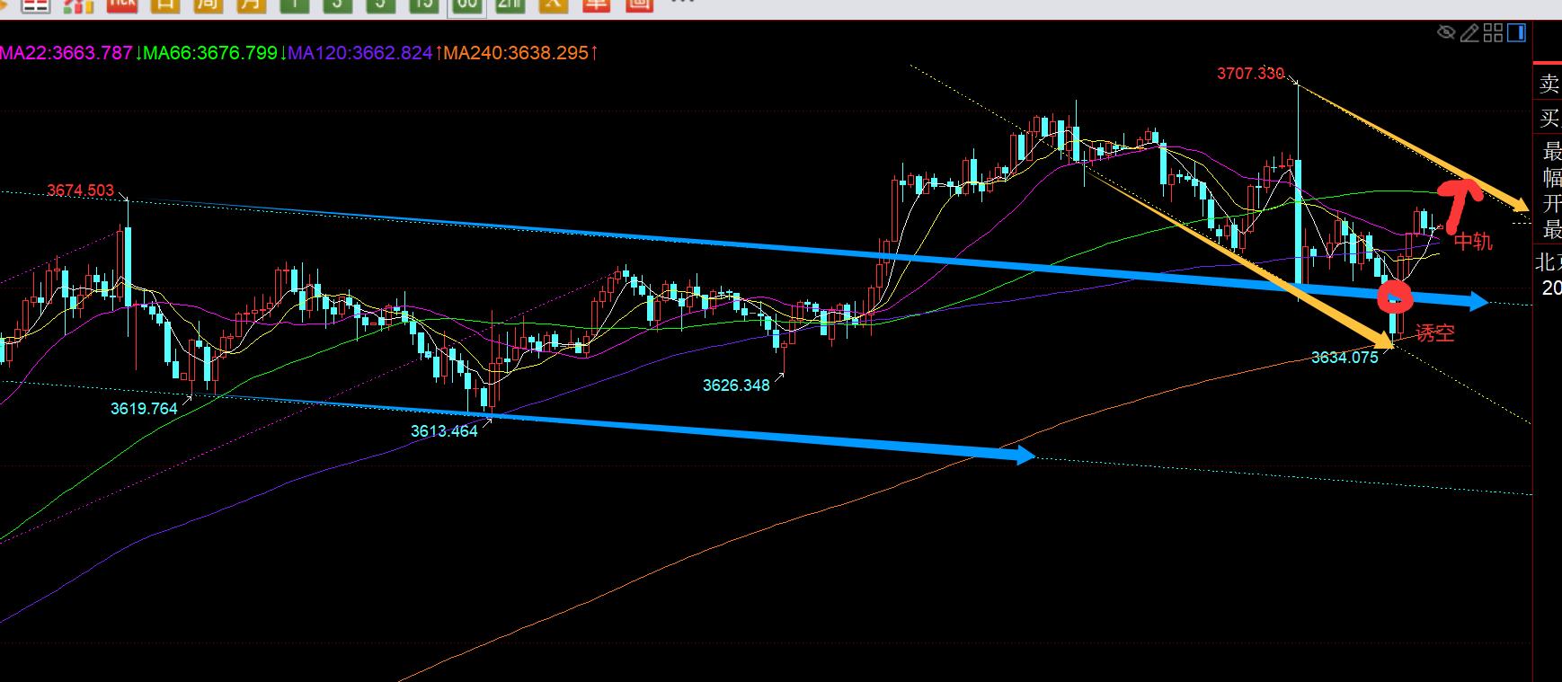 terzo livello di linea oraria dorata: oltre notte in alto e caduta. Questa mattina, un'ondata di pull-up è apparsa prima per testare la pista centrale. Dopo sotto pressione, arrivò un'ondata di backtest. Prima della sessione europea, il piercing ha perso il minimo notturno di 3645, ma presto la sessione europea ha toccato e tirato fuori, e il Big Sun è tornato sul canale blu nella classifica. Ciò dimostra che la rottura di 3634 è un'illusione, che attira a breve; E il continuo pull-up positivo ha sfondato la pista centrale e si è alzato, che ha anche colpito un nuovo giorno. Presta attenzione agli utili e alle perdite del supporto della pista media stasera, quindi è leggermente spostata a 3663,7, se puoi continuare a chiudere e stabilizzare questa posizione, il mercato statunitense può avere un'ondata di secondi aumenti, perché dopo un'ondata di piccoli risorti, generalmente continuerà. La resistenza a breve termine è 3680-3683, 618 soppressione divisa e la pressione sulla guida superiore del canale giallo nella figura. Per rafforzare e aumentare ulteriormente, è ancora necessario superare questo luogo; Naturalmente, se si perde ripetutamente la guida centrale e si chiude, è possibile che l'oscillazione della gamma vada su e giù. A quel tempo, se non riesci a tornare alla guida centrale, devi regolare la tua posizione in anticipo e attendere il buon minimo per stabilizzarsi prima di guardare;
