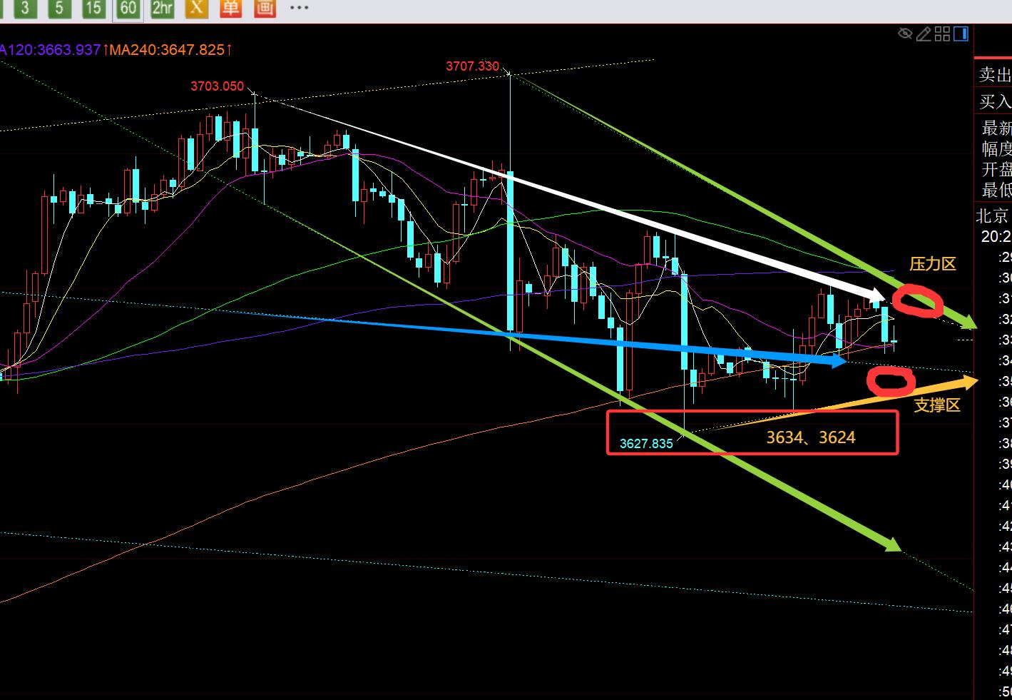 terzo, il livello della linea d'oro: a giudicare dalla distribuzione del canale sopra la tabella sopra la sessione di ASIAN ha infine la linea di blu, a causa del blu, ha infine la linea di blu, a causa del blu. All'altezza di 3661 nel pomeriggio, e ha anche effettivamente sfondato la pista centrale della linea oraria. Tuttavia, la sessione europea non poteva continuare a esercitare la forza, ma invece si collegava attorno alla pista centrale, in modo da poter oscillare solo con le tracce superiori e inferiori della banda Bollinger; La traccia superiore della pista superiore e la linea di resistenza alla tendenza bianca della traccia superiore del canale verde sopra, che ha concentrato circa 3656-3660 resistenza e la resistenza giornaliera della media mobile 3664. Se la pressione non è alta, cadrà ripetutamente e il punto in alto della resistenza rallenterà gradualmente; e il punto di supporto alla tendenza blu, il supporto della linea di tendenza gialla e i punti bassi stabiliti negli ultimi due giorni, la concentrazione di 3642-3637-3634-3627-24 può stabilizzarsi in qualsiasi momento e rimbalzare e tirare su; Pertanto, l'intervallo approssimativo riguarda oscillando avanti e indietro tra 3660-3624, e c'è anche una certa piccola doppia top in 3672, ma quando si rompe attraverso le due linee di contropressione del canale della stazione attraverso 3660-64, tenderanno a fluttuare gradualmente verso l'alto, e i punti alti e bassi si spostano lentamente verso l'alto;