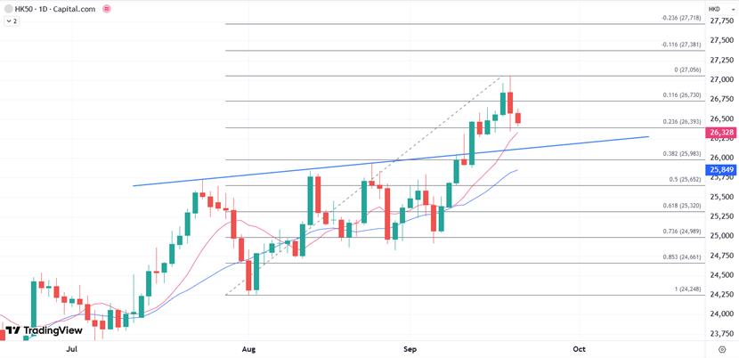 XM Hong Kong Stocks: dopo l'aumento cumulativo del 6% nelle tre settimane precedenti, il primo mercato di Hong Kong oggi era morbido. Oggi, l'indice Hang Seng ha aperto 85 punti in meno, raggiungendo 26459 punti e poi è sceso ripetutamente, una volta al massimo 304 punti, scendendo 264 punti o l'1% a mezz'eic di 26.280 punti; L'indice cinese è sceso di 122 punti o dall'1,3% a 9.349 punti; L'indice della tecnologia Hang Seng è sceso di 74 punti o dall'1,2% a 6.220 punti.