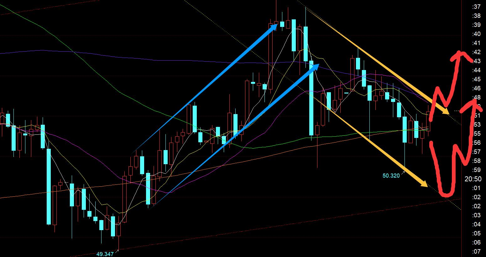 第二,白银方面:昨日美盘研报也是提示会有二次拉升,同样离预期看涨点51.4略差一点,提前拉升一波;而走完二次拉升过程,再下行给到51.4就容易成陷阱;