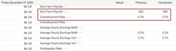 Às 21h30 desta sexta-feira, se a paralisação do governo dos EUA terminar, o Departamento de Estatísticas Trabalhistas do Departamento do Trabalho dos EUA divulgará o relatório de outubro sobre empregos não agrícolas; se a paralisação do governo dos EUA continuar, o relatório sobre o emprego não agrícola poderá não ser divulgado a tempo. Se o relatório sobre o emprego não agrícola for divulgado, o indicador mais observado é o número de novos empregos não agrícolas, que anteriormente era de 22.000. O valor anterior mencionado aqui não é de setembro, mas de agosto. Dado que a paralisação do governo dos EUA xm-links.começou em 1 de Outubro, e o relatório de Setembro sobre as folhas de pagamento não agrícolas deveria ser divulgado em 3 de Outubro, o Bureau of Labor Statistics dos EUA ainda estava fechado nesse dia, pelo que não pôde ser divulgado conforme programado. O valor esperado das instituições financeiras é de 50 mil pessoas, superior ao valor anterior de 22 mil pessoas, mas muito abaixo do nível normal de 150 mil a 250 mil pessoas. Mesmo que o valor anunciado corresponda às expectativas, será difícil aumentar a confiança do mercado. Devido à incerteza no momento da divulgação das grandes folhas de pagamento não agrícolas, o foco do mercado se volta para os dados das pequenas folhas de pagamento não agrícolas desta quarta-feira. O valor anterior era -32.000 e o valor esperado era 24.000. Embora a expectativa tenha passado de negativa para positiva, o valor absoluto ainda é baixo e as perspectivas para o mercado de trabalho dos EUA são pessimistas.